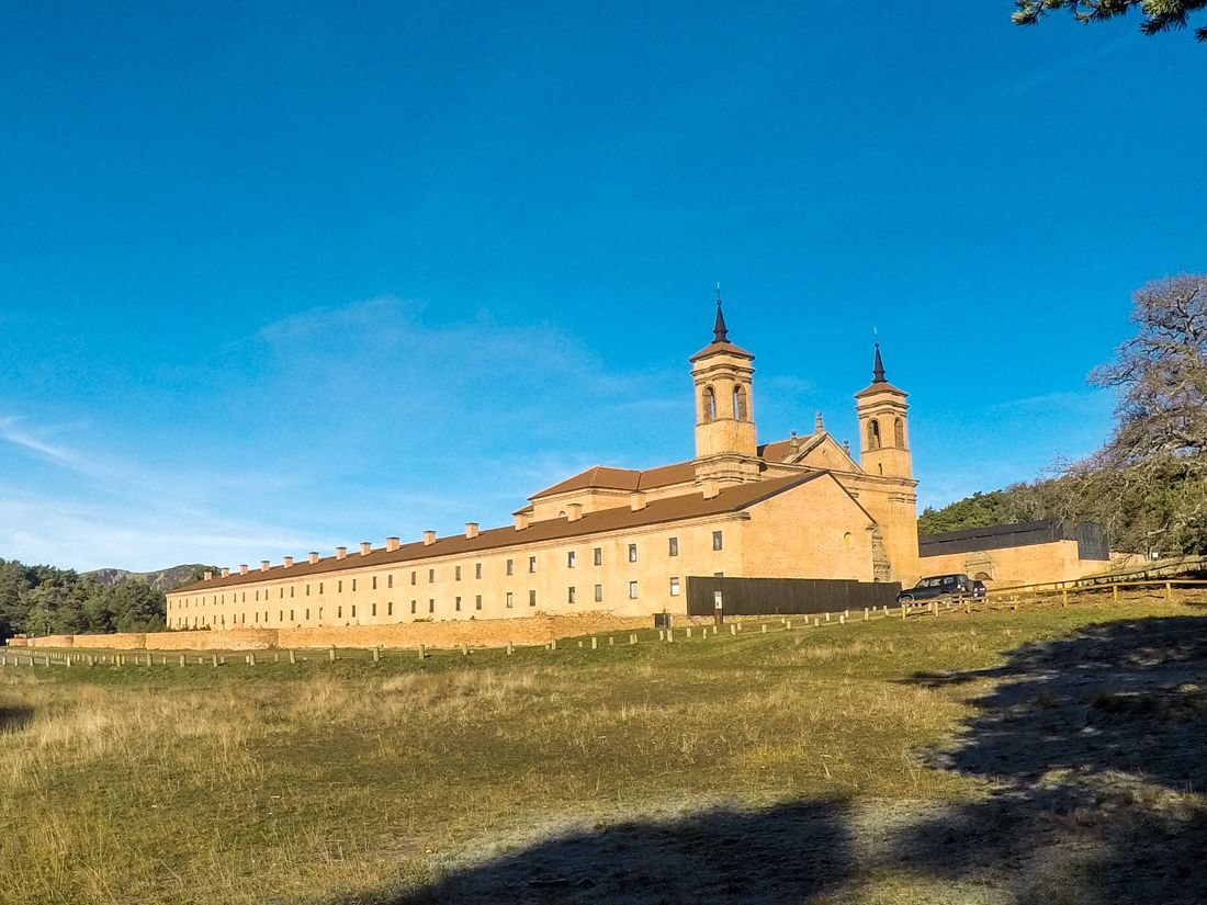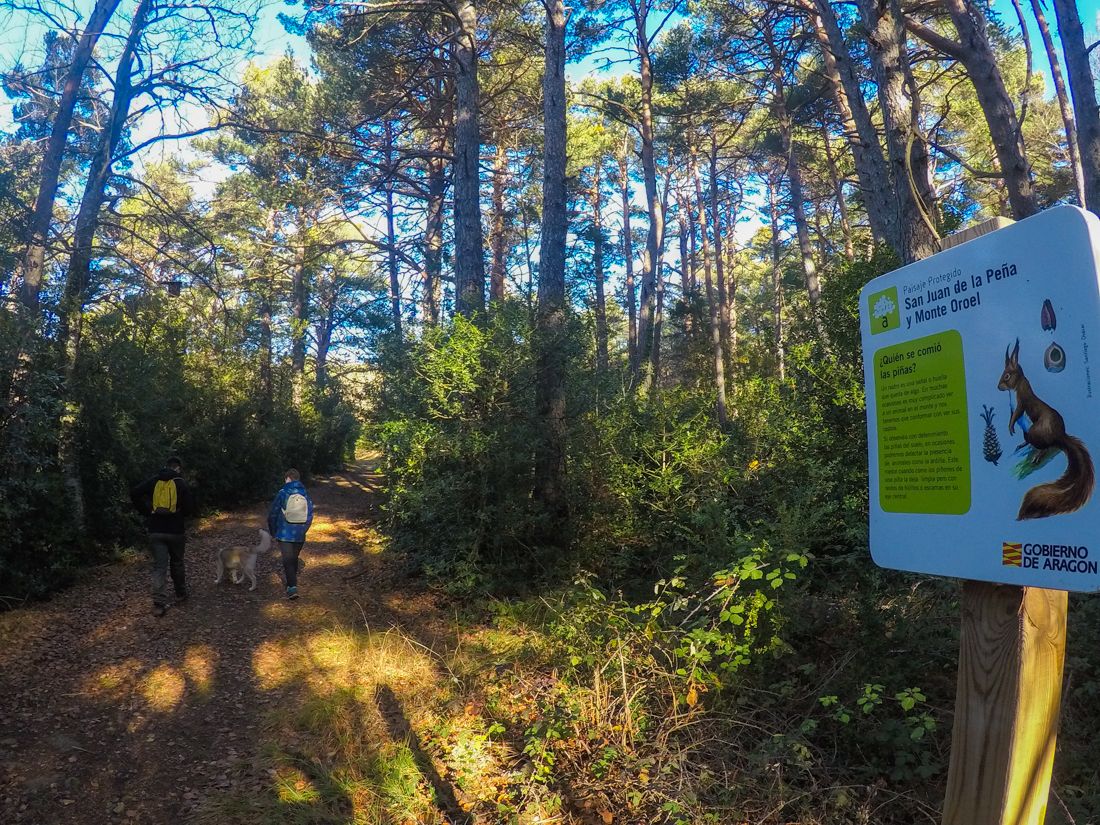La ruta comienza en el llano de San Indalecio, junto al Monasterio Nuevo de San Juan de la Peña. Aquí hay un parking donde podemos dejar el coche sin problemas. Nos dirigimos a la zona de los columpios, desde donde sale el sendero que nos llevará al primer mirador.