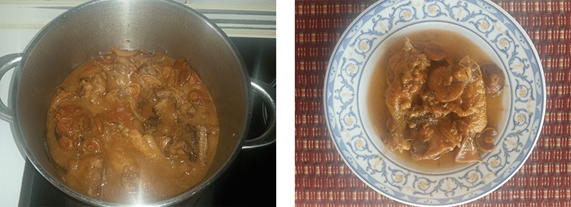 Guisote de pollo de corral con fongos royos