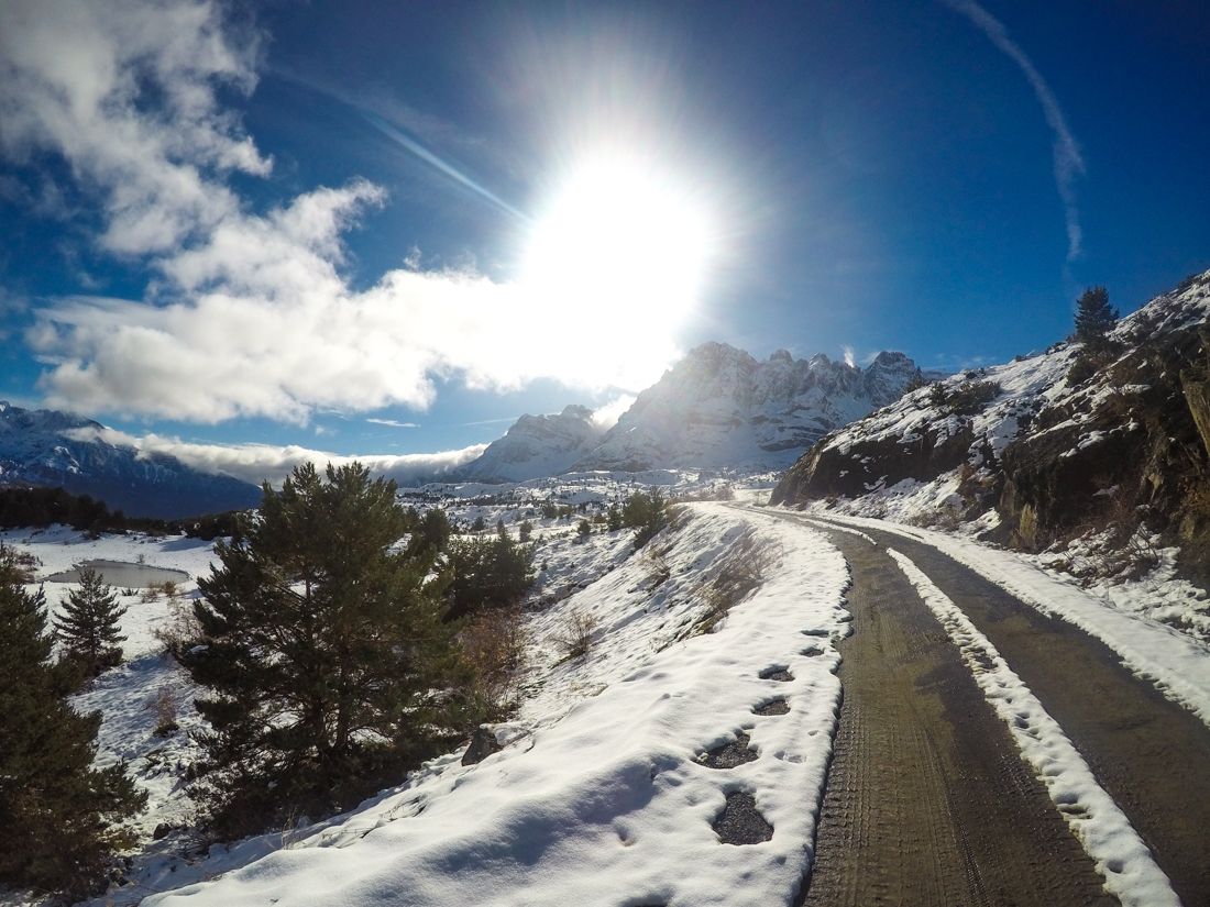 Una vez en Tramacastilla continuamos la carretera en dirección Sandiniés. En seguida encontramos una rotonda donde dejaremos el coche. Junto a la carretera hay espacio suficiente para poder aparcar. Una pista con una barrera sale desde la misma rotonda. Aquí comienza nuestra ruta.
